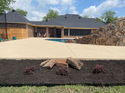 This client wanted to clean his back yard near his pool. We installed washed limestone and made a bed. We also made and installed a trellis for the Peggy Martins.