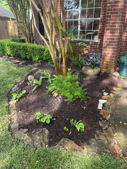 This client wanted us to remodel his front yard. We removed the dead plants from a past freeze. We planted Dwarf Baby Gem Boxwoods, Coral Drift Roses, Vincas, Double Knockout Roses and Italian Cypress. We also laid top soil and mulched. We did general trimming to make everything look clean and tidy.